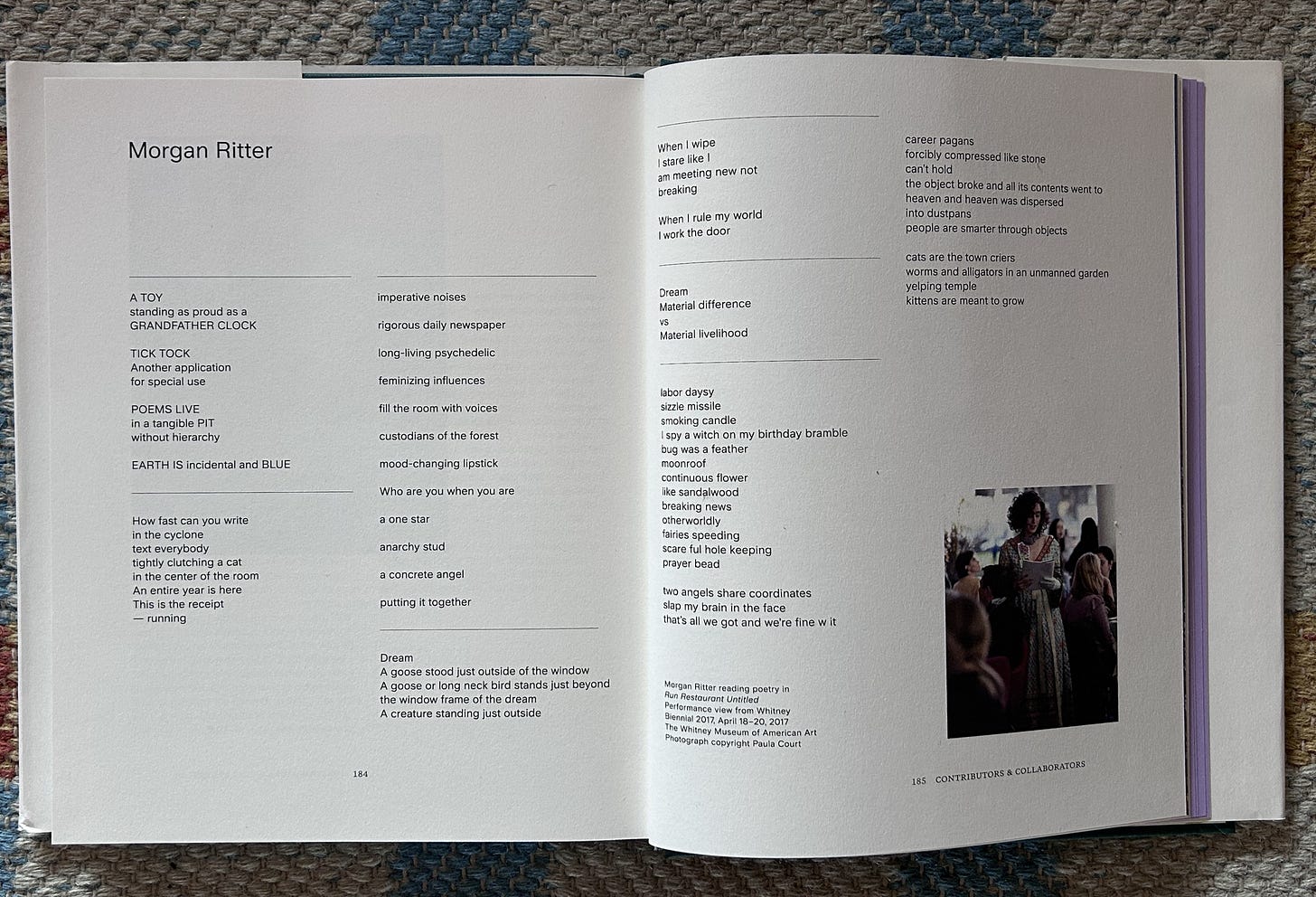 Drifting, in this rambling meditation on care and hospitality in the arts, the Lumber Room is, to me, an actualization of this theory of a warm space. THE warm space I was thinking when I wrote, “WARM SPACE” the loose poem at the top of this meandering diary entry. Founder Sarah Miller Meigs and the gifted curators and artists over its many years set a very high bar for the marriage of a domestic environment and a site for distinguished arts and culture experiences. What comes to mind is the Donald Judd Foundation 101 Spring Street in New York— I don’t know if others will get that too. As in, what was felt immediately was the warmth of an inhabitable space maintained just enough within an open art environment. Ripe with potentiality. Flowers and food abundantly thoughtful and prioritized. I’ll miss what it was, as they are saying goodbye to the art program as it was, for now, but like many, I am looking forward to seeing how they will continue to live out their care for artists. Here are a couple poetry offerings I presented in projects at the Lumber Room over the years. I realized I never shared the poetry I contributed for Susan Cianciolo’s book!!