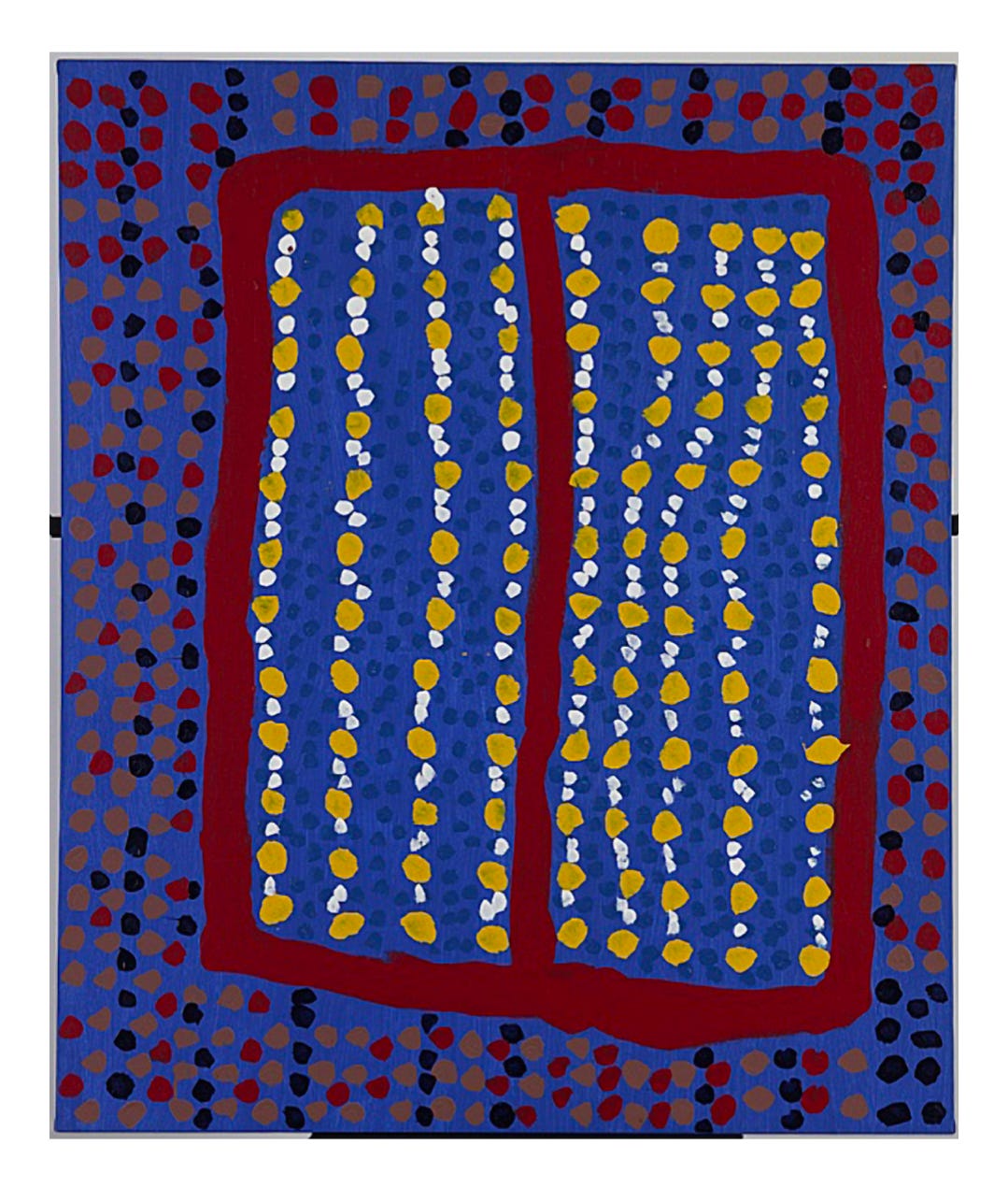 Kristan recently reminded me that during install, we slept in “No Boundaries”, an exhibition PICA hosted of contemporary Aboriginal artists’ painting in 2015. (The reason for the sleepover in this instance was the security guard was off duty at a certain time so staff/ preparators needed to be onsite during install until the opening due to terms of loan I am assuming.) I vaguely remember sleeping on moving blankets, walking in socks to a bathroom with a mop bucket in corner, embodying the broom’s location, and intimately knowing/ scaling a sort of ramp/handrail to hang a painting high up. Those were such genuinely fun times, light in memory. Upon waking there was some journaling of a dream I had, intrinsically informed by the dot paintings. I want to believe the work in the show worked on my spirit in a deep and unique way not attainable through any other means but by sleeping with it….but now I just don’t remember the dreams and don’t know where the records of that time are, aside from memory shared with Kristan !! (And Spencer?)